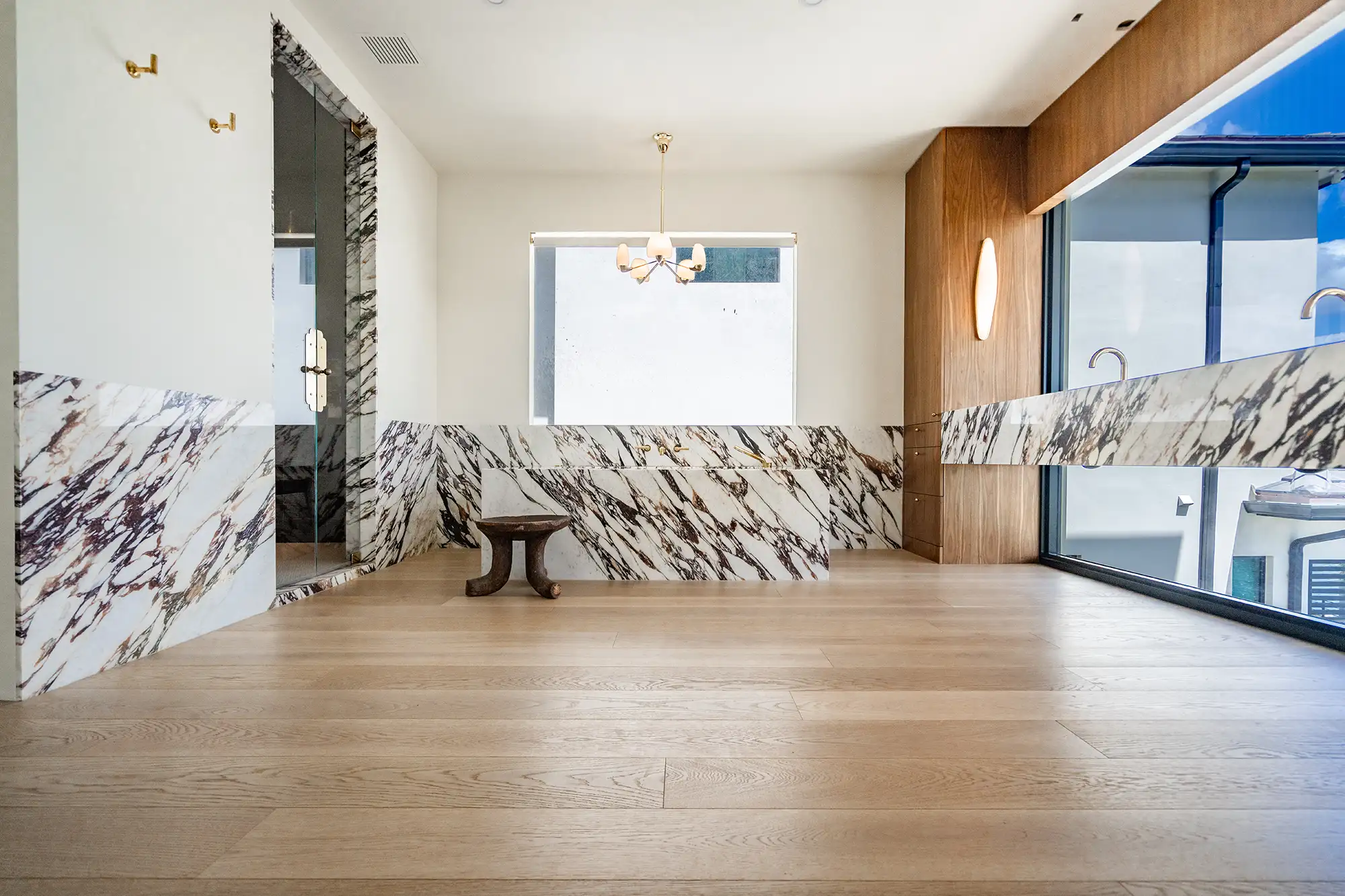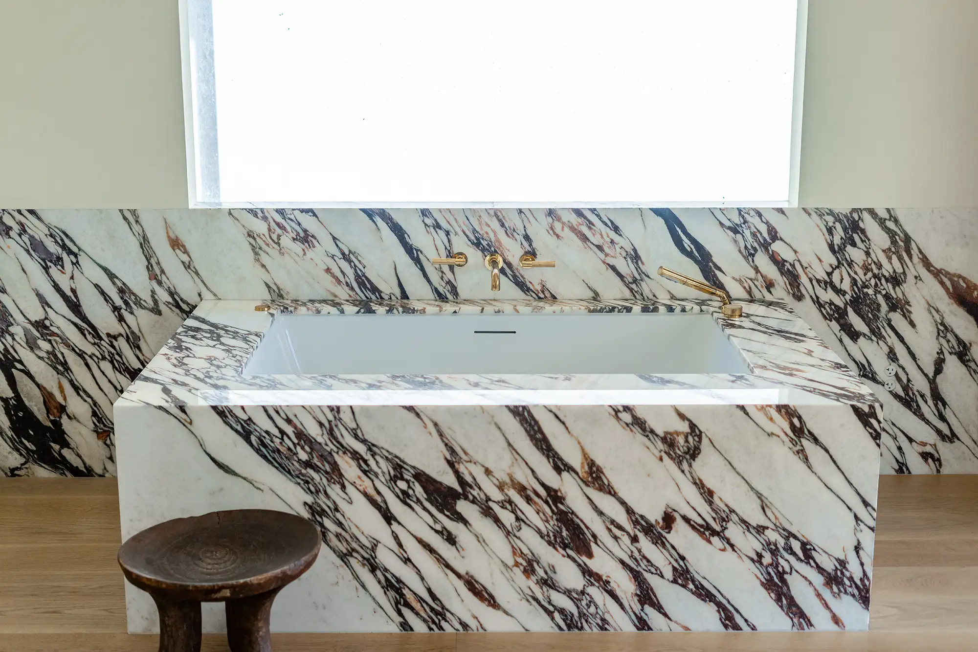 Bold yet elegant, this bathroom by designer Meredith Stern makes a striking statement with Calacatta Viola marble. The dramatic veining and rich contrast of the stone elevate the space into something sculptural and unforgettable. Paired with natural light and wood accents, it’s a true lesson in timeless design with a fearless twist.