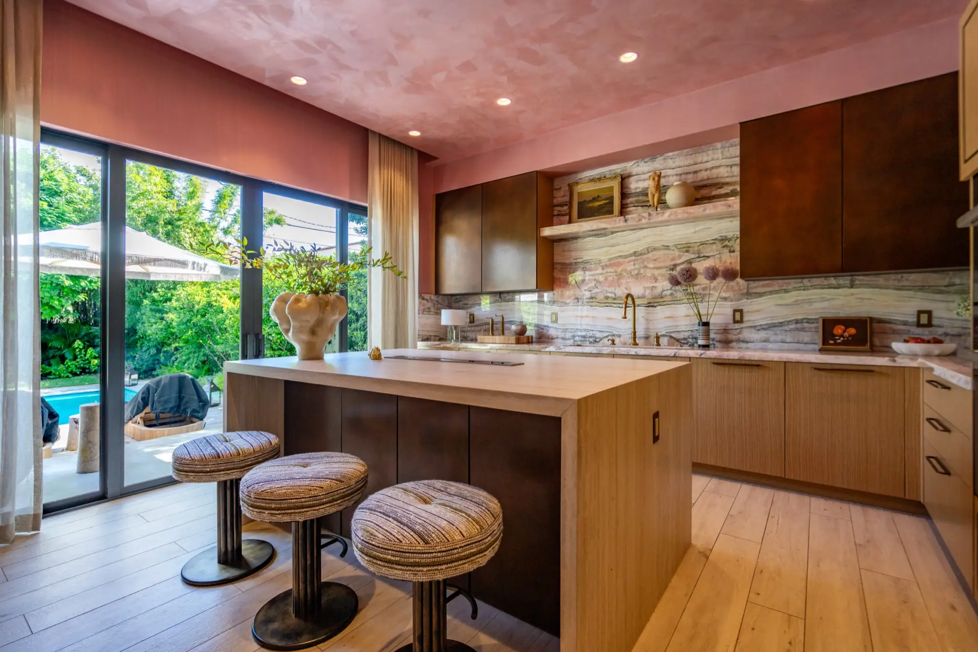 Designer and celebrity chef Travis London’s Miami home is a bow to balanced maximalism. With material selected from our collection, he carefully crafted a design that flows with the veins, hues, and shadows of its natural materials. A counterpoint to restrained design, a rebellious departure from simple white marbles and beige quartzites, his project redefines how natural surfaces integrate into the complexity of interior design. In a celebration of color, texture, and nature, Travis London’s home demonstrates how bold stone can live as the heart of a design, an integral part of a greater organism, working holistically with surrounding elements to bring spaces to life.