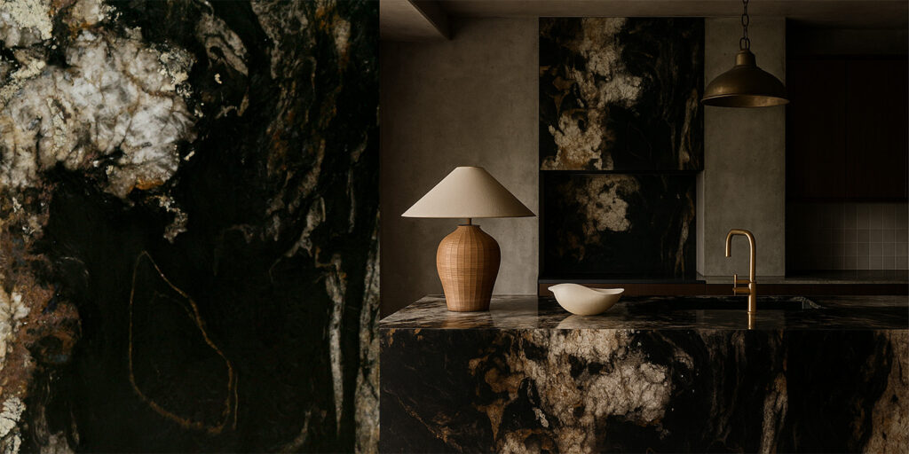 It’s a surface that feels organic, tactile and deliberate, breathing life into a surface that might feel too still if polished. There is a sense of motion to Avocatus Leather, where dark and light coexist in movement. This dynamic stone is perfect for statement kitchens, bold bathrooms, and feature walls.