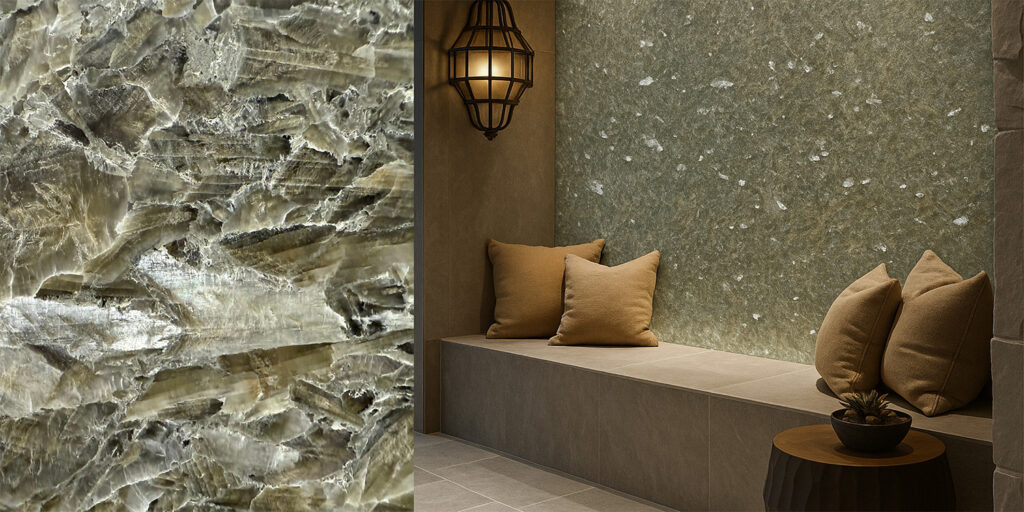 Selenite Marble doesn’t just look good, it moves. Its scale-like texture shimmers under the light, evoking the feeling of a serpent’s skin, striking and unforgettable.